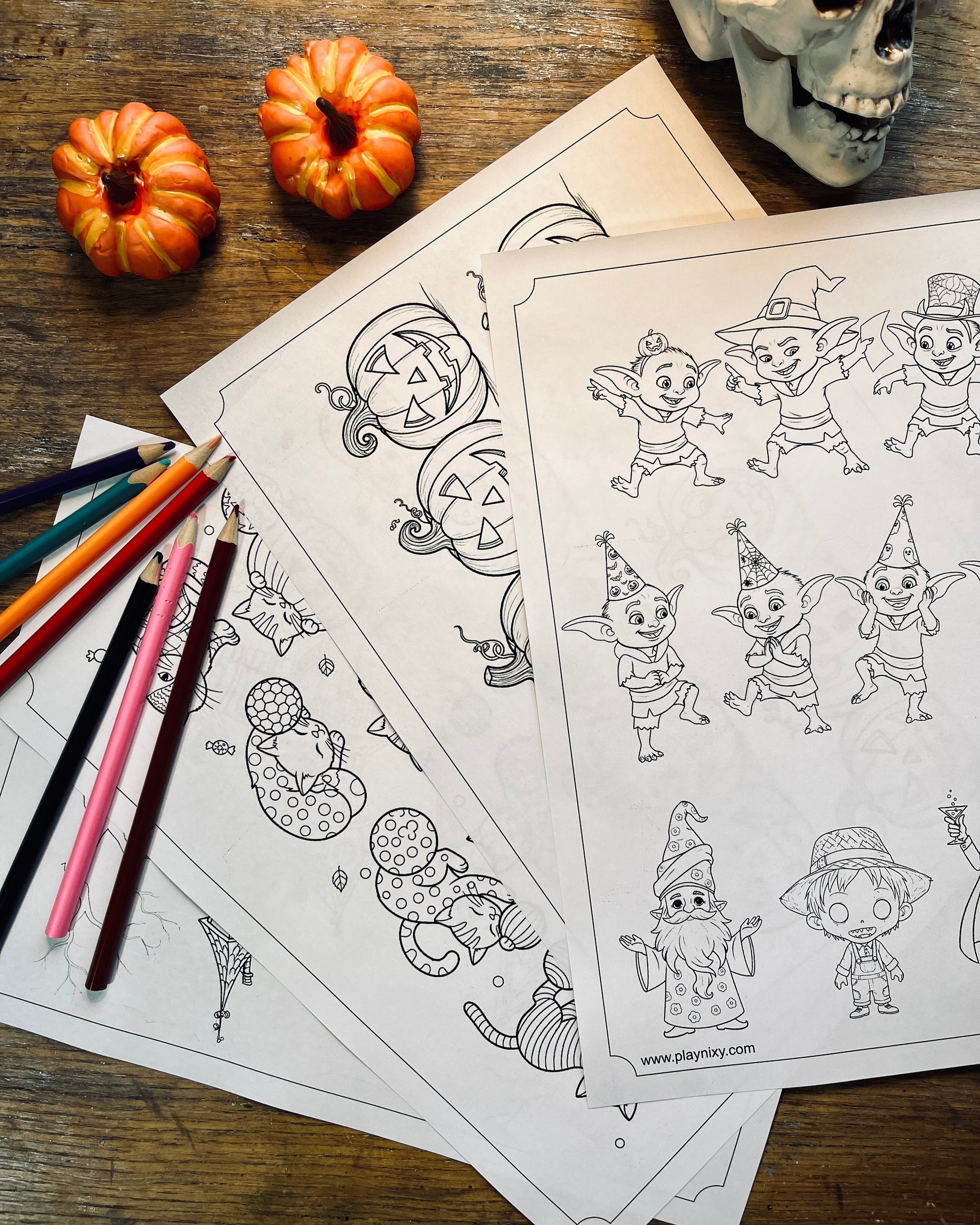 Get into the Halloween spirit with a quick and simple coloring session! This set of 4 Halloween-themed coloring pages is perfect for monsters of all sizes.
